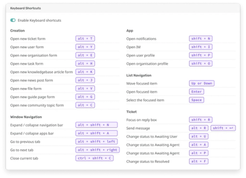 Keyboard shortcuts can make answering tickets and performing help desk actions more efficient.