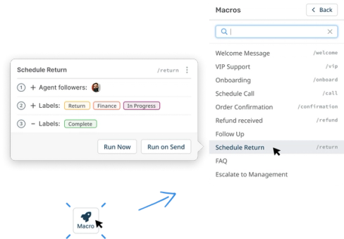 Eliminating unnecessary actions and processes is one of the most effective ways of improving efficiency and agent engagement. If your workflow requires agents to carry out the same actions across many tickets, you can automate the process using macros.