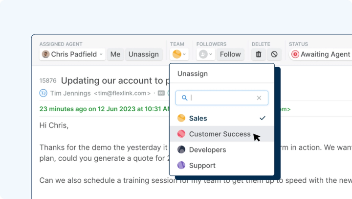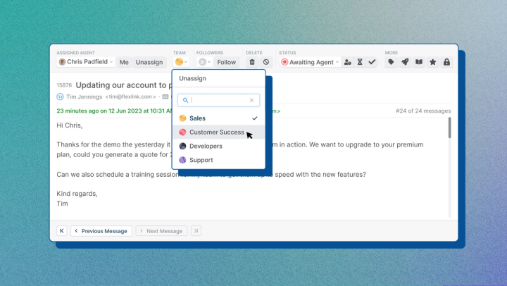 Agents can effortlessly move tickets between brands, ensuring customer inquiries get directed to the relevant team.