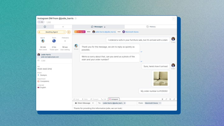 Whether you want to deliver customer service, answer questions, or simply interact with your followers, Instagram Direct Messaging on Deskpro guarantees that every message gets the attention it deserves.