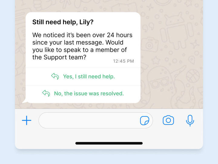 Send templated messages to initiate and follow up with customers, ensuring an attentive customer experience without hitting the WhatsApp Business Account freeform message limits.