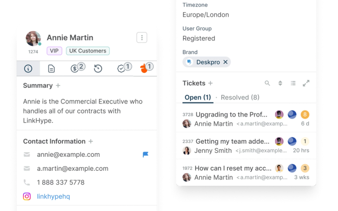When your customers need help, Deskpro instantly creates a support ticket, no matter which channel they use - email, chat, phone, or social media.