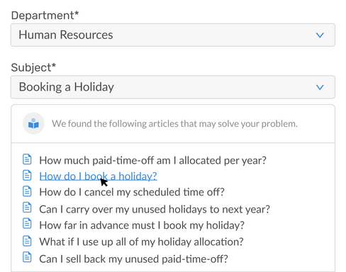 Your staff can quickly find articles in the knowledge base and resolve their own queries.