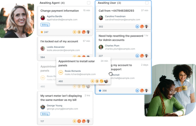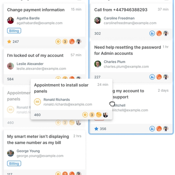Kanban view helps you and your agents better visualize the different stages of a project. Display your cards in a board view to see the ongoing actions across your help desk.