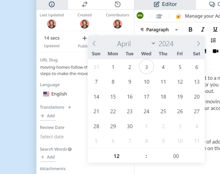 We've enhanced the Auto Publishing feature to allow you to schedule your Help Content for publication at your preferred date and time with the new date and time picker.