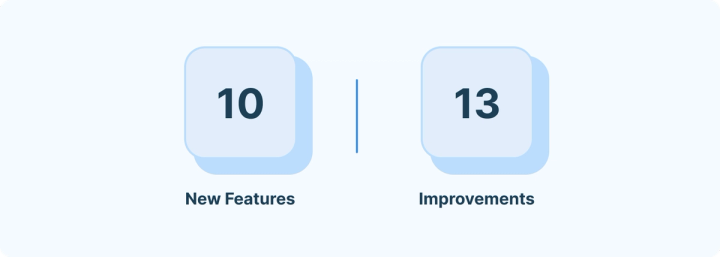 We're breaking down the development statistics to show how our platform is progressing. The team pushed 10 new features available to you right now, including brand-new apps, efficiency tools, and enhanced permissions.