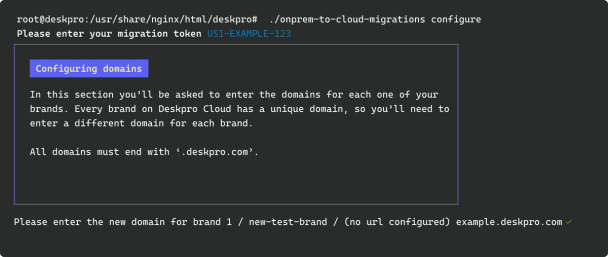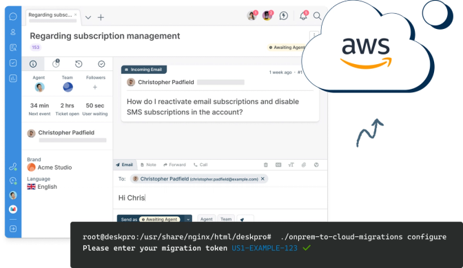 Migrating to Deskpro Cloud from your current account is simple; we'll provide you with an access token, and one command later, your migration is in progress.