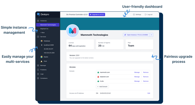 Deskpro Horizon brings the latest in On-Premise innovation with the On-Premise Controller. We can't wait for you to access the new On-Premise management tool and experience stress-free server administration.