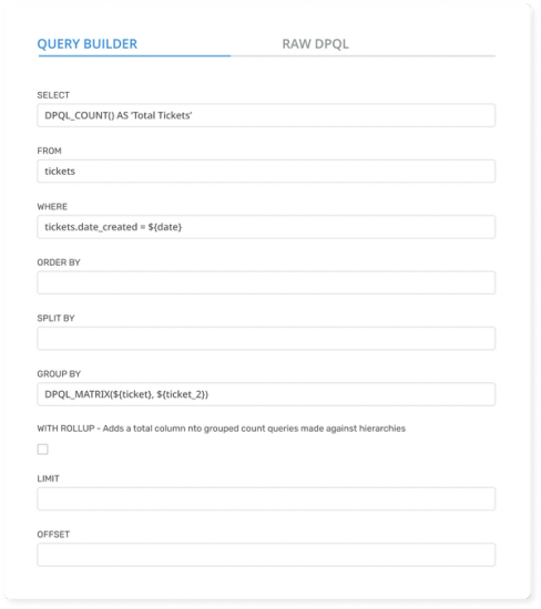 Using Deskpro's inbuilt query builder you can create highly specific reports for your organization through DPQL query language.