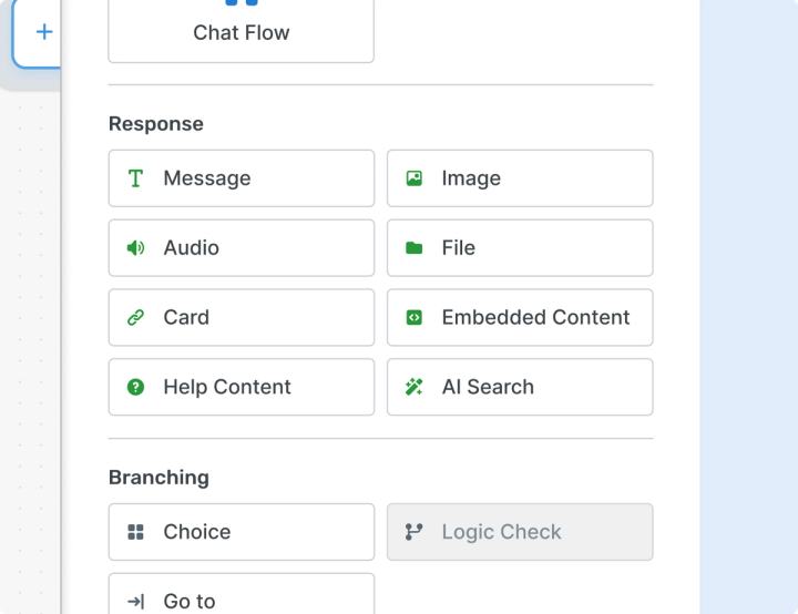 Enhance your chatbot's capabilities with expanded Chatflow Response Options. Now, by supporting embedded content, audio clips, and file sharing, you can deliver a richer, more interactive user experience.
